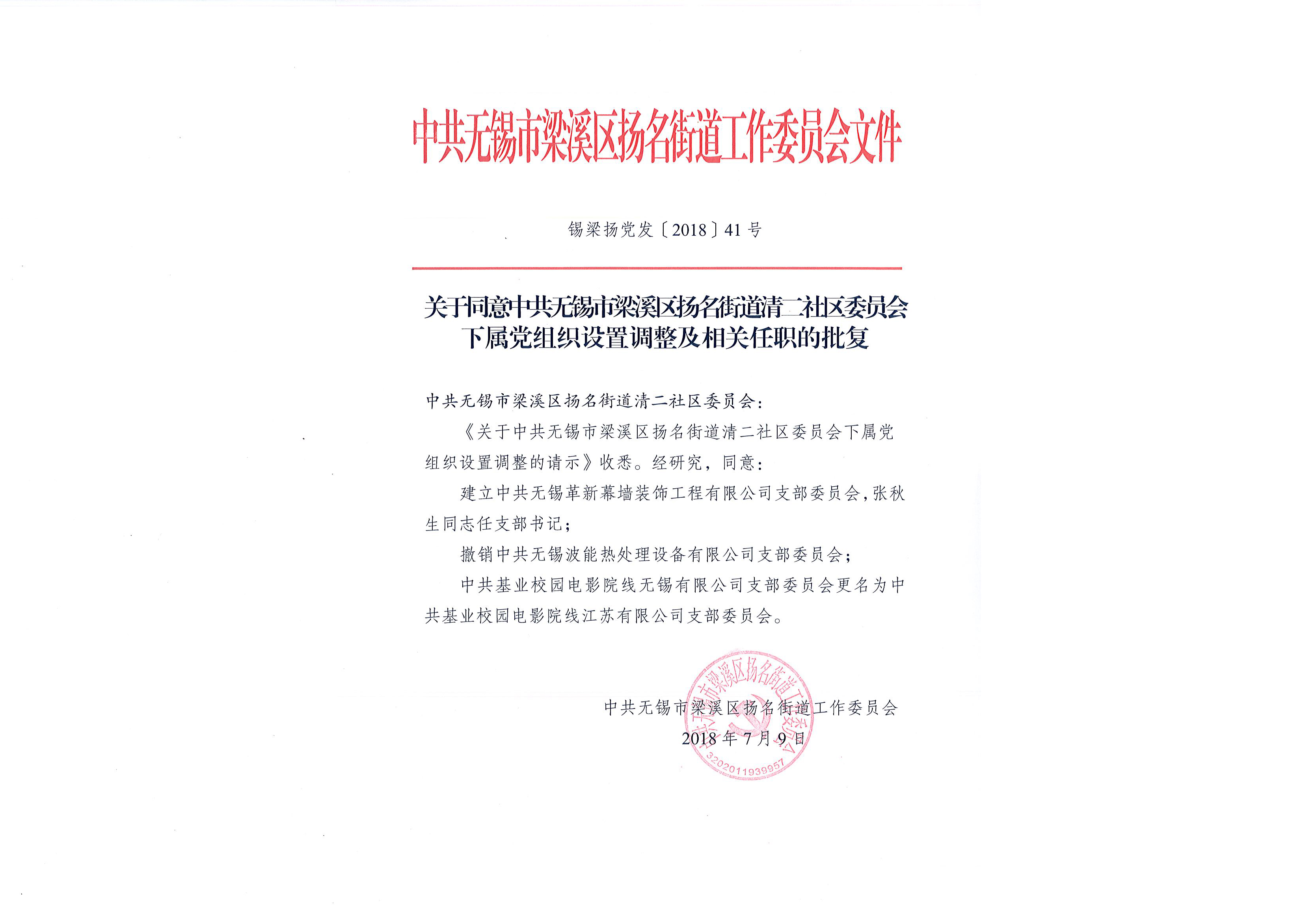 喜訊:熱烈祝賀我公司建立中共無錫革新幕墻裝飾工程有限公司支部委員會