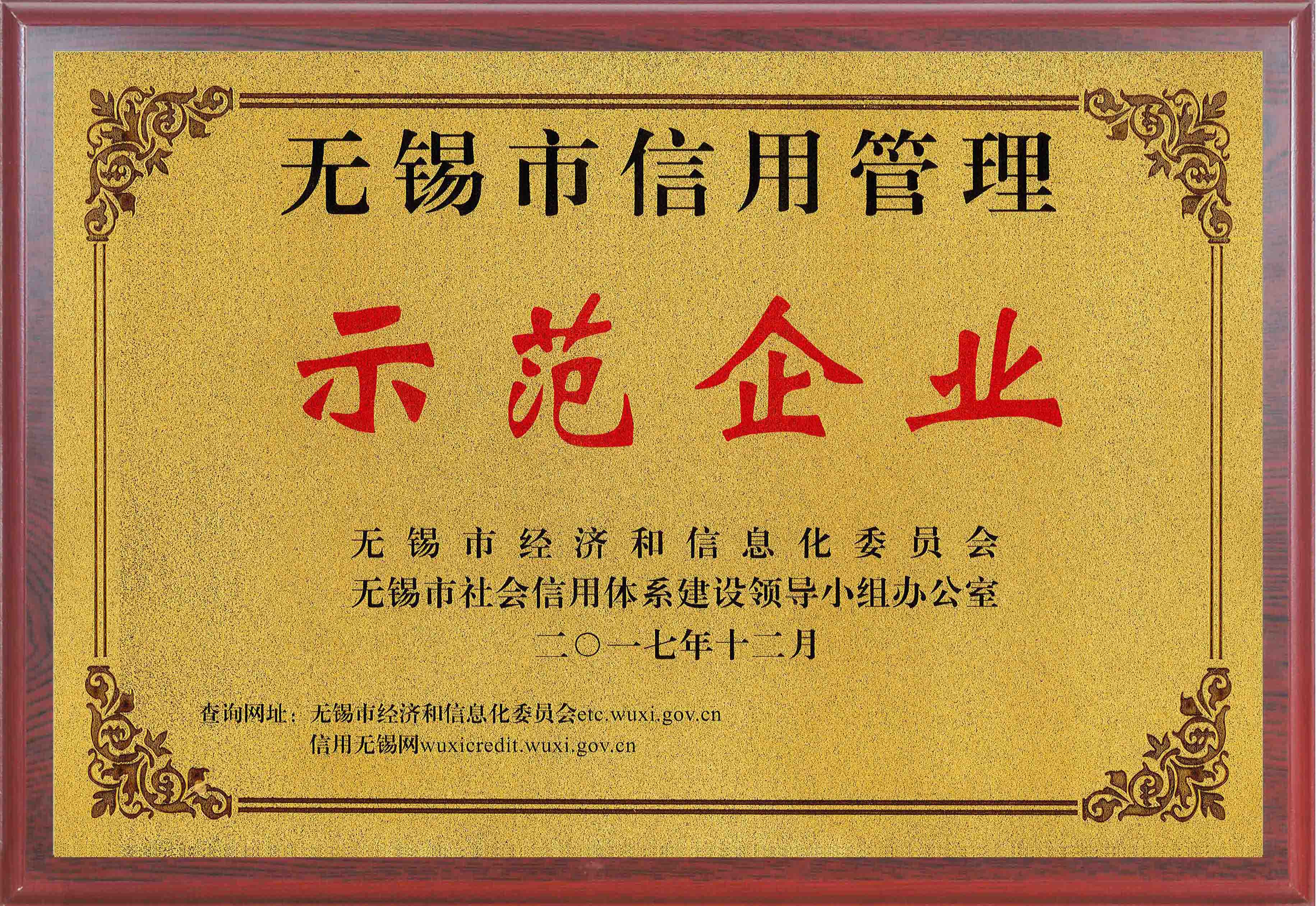 喜訊:熱烈祝賀我公司榮獲"2017年無(wú)錫市信用管理示范企業(yè)"獎(jiǎng)